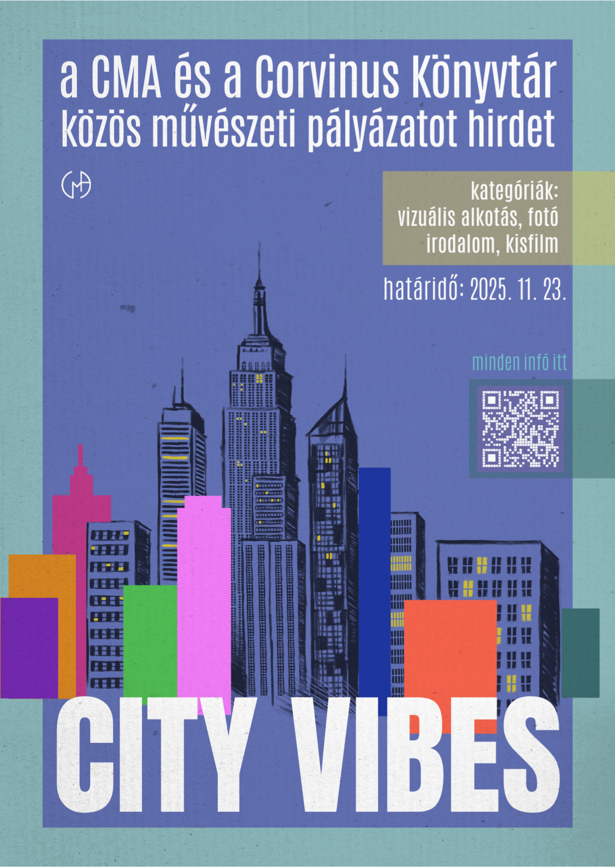 Ezért a Budapesti Corvinus Egyetem Könyvtára és a Corvinus Művészeti Akadémia közösen rendezi meg a City Vibes kiállítást. Milyen élni ezekben a hol kisebb hol nagyobb, hibrid szerves és szervetlen rendszertelen rendszerben? Ezt szeretnénk visszaadni ezen a kiállításon, ahova a ti alkotásaitokat várjuk. Lassítsatok le, inspirálódjatok a közvetlen környezetetekből és alkossatok! 5 kategóriában pályázhattok a részleteket a tájékoztatóban találjátok, de elöljáróban annyit: